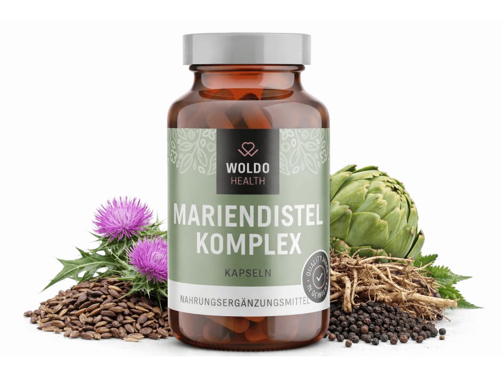 Ostropestřec mariánský (200 mg, 80 % silymarinu) chrání hepatocyty před toxiny, podporuje syntézu jaterních bílkovin a usnadňuje obnovu poškozených buněk.