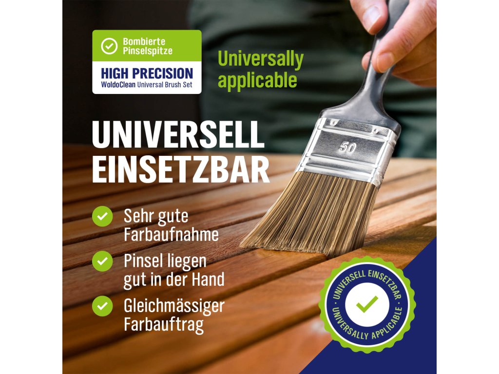 Profesionální sada malířských štětců WoldoClean se vyznačuje vysokou odolností proti opotřebení a dlouhou životností.