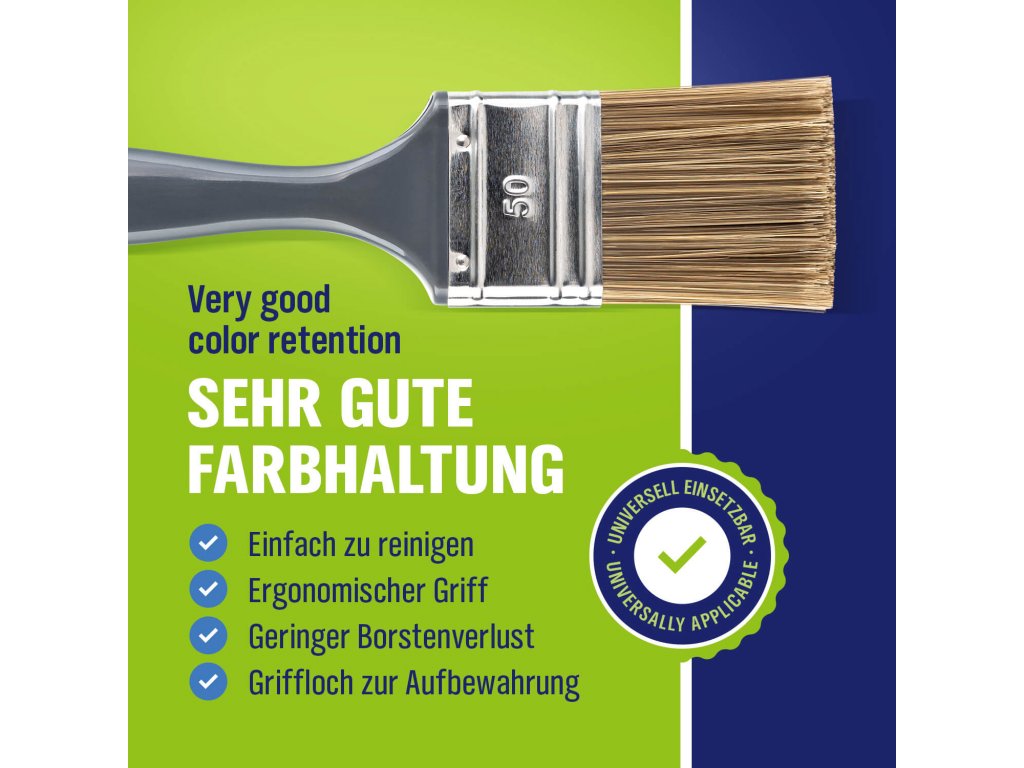 Vhodné pro použití v interiéru i exteriéru. Zaoblené špičky štětin zajišťují dokonalé roztírání bez zanechání šmouh. Štětce jsou pevné, nevypadávají a snadno se čistí.